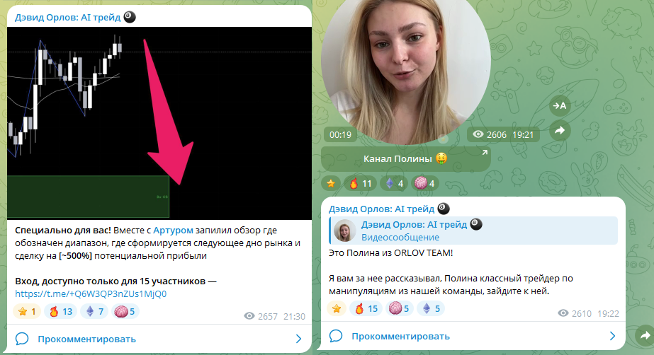 • Трейдер монетизирует проект через рекламу сомнительных каналов и публикацию реферальных ссылок;