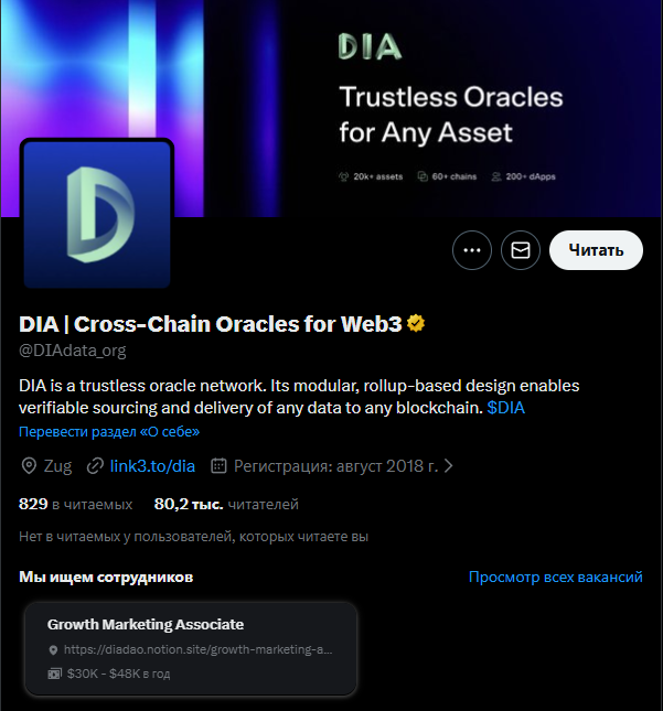 Пул DIA USDC – это запас токенов сети оракулов. Ее структура обеспечивает проверяемое получение и доставку данных в любой блокчейн. Разработчики позиционируют свой ресурс как нечто высокотехнологичное, но возможности сервиса вряд ли заинтересуют обычного трейдера. Тем не менее инвесторы могут обратить внимание на утилитарный коин экосистемы и рассмотреть его, например, как инвестицию или инструмент для спекуляций. Далее в статье расскажем о компании и монете подробнее и постараемся оценить перспективы актива.