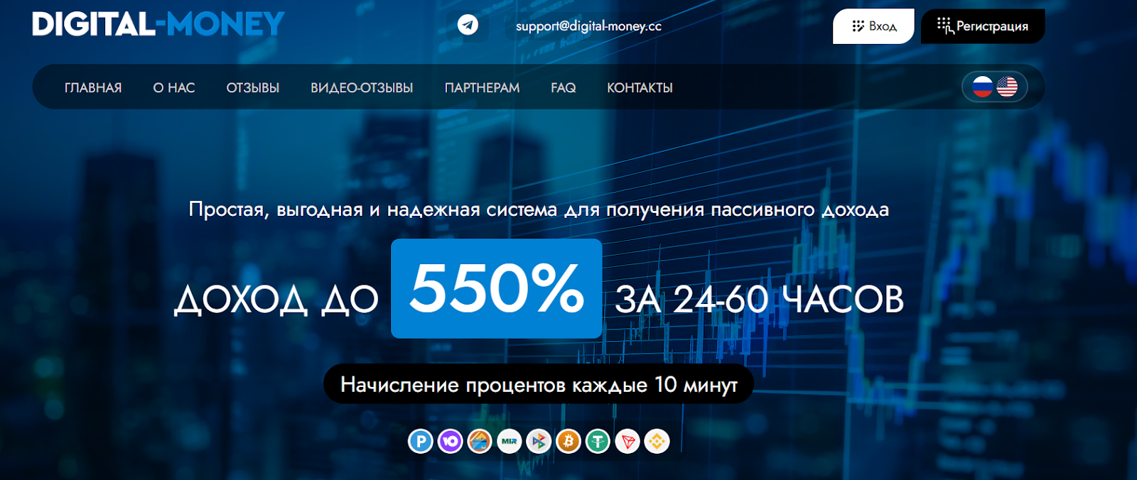 Digital Money Cc — инвестиционный фонд, гарантирующий бешеные проценты за пару дней на полном пассиве. Рассказывают легенды про несколько команд трейдеров и консервативный подход к рискам, обещают 550% за три дня. При этом у компании совершенно нет плюсов и полно негативных моментов: