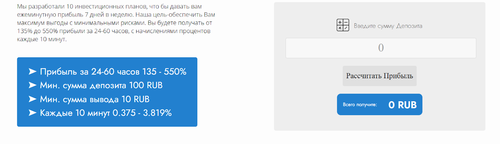 - за сутки можно заработать 135%, а за 60 часов — 550%.