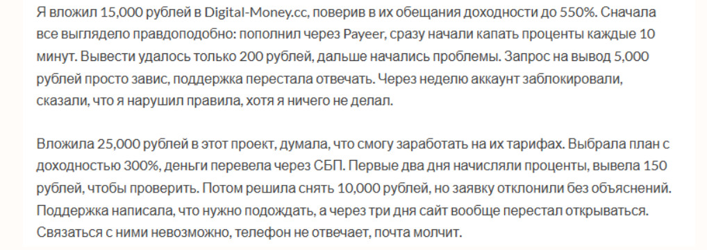 Digital Money Cc: отзывы клиентов о доходности инвестиций