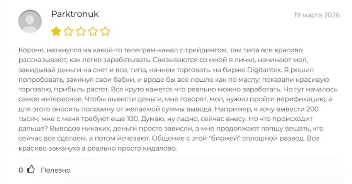 Отзывы клиентов о криптовалютной площадке DIGITANTEX