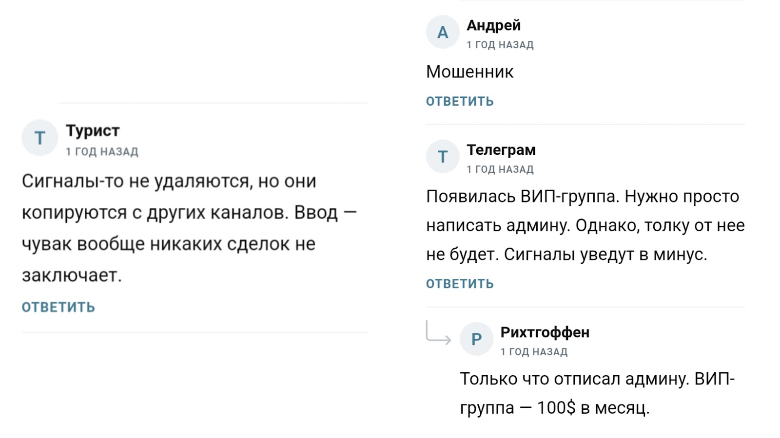 На тематических площадках есть отрицательные отзывы о проекте Дмитрий Пономарев Трейдинг. В них сообщают, что сигналы автора приводят к сливу депозитов. Пользователи пишут, что бесплатные сигналы копируются у сторонних трейдеров.