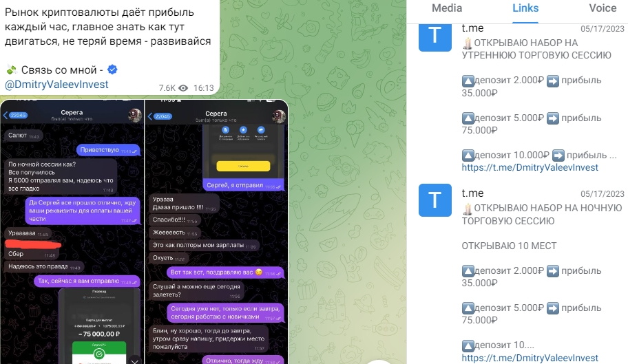 Инвестор утверждает, что зарабатывает на пампе криптовалюты (схеме манипулятивного повышения курса) и может быстро поднять активы. Сбор по 2 тыс. руб. для вкладчиков заканчивается забросом доверчивых подписчиков в чёрный список.