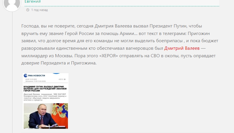 Работает Дмитрий ловко и быстро, ведь начинает выкладывать отчёты уже сразу после создания канала (хранит целый склад фейковых скринов), а топом стал скриншот новости о том, что его будет награждать президент и инвестор якобы спонсировал ЧВК Вагнер на СВО. Фантазия у жулика бьёт фонтаном.