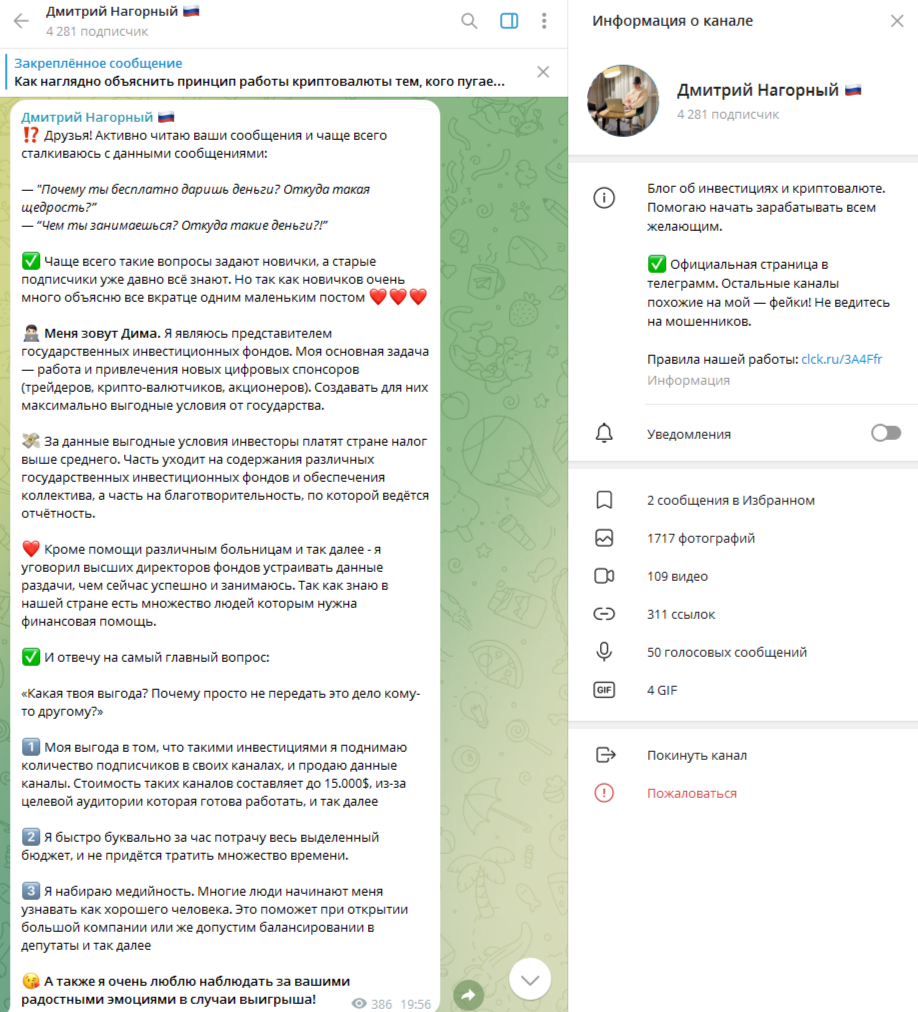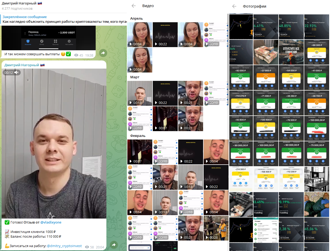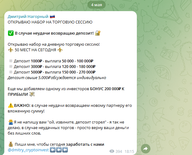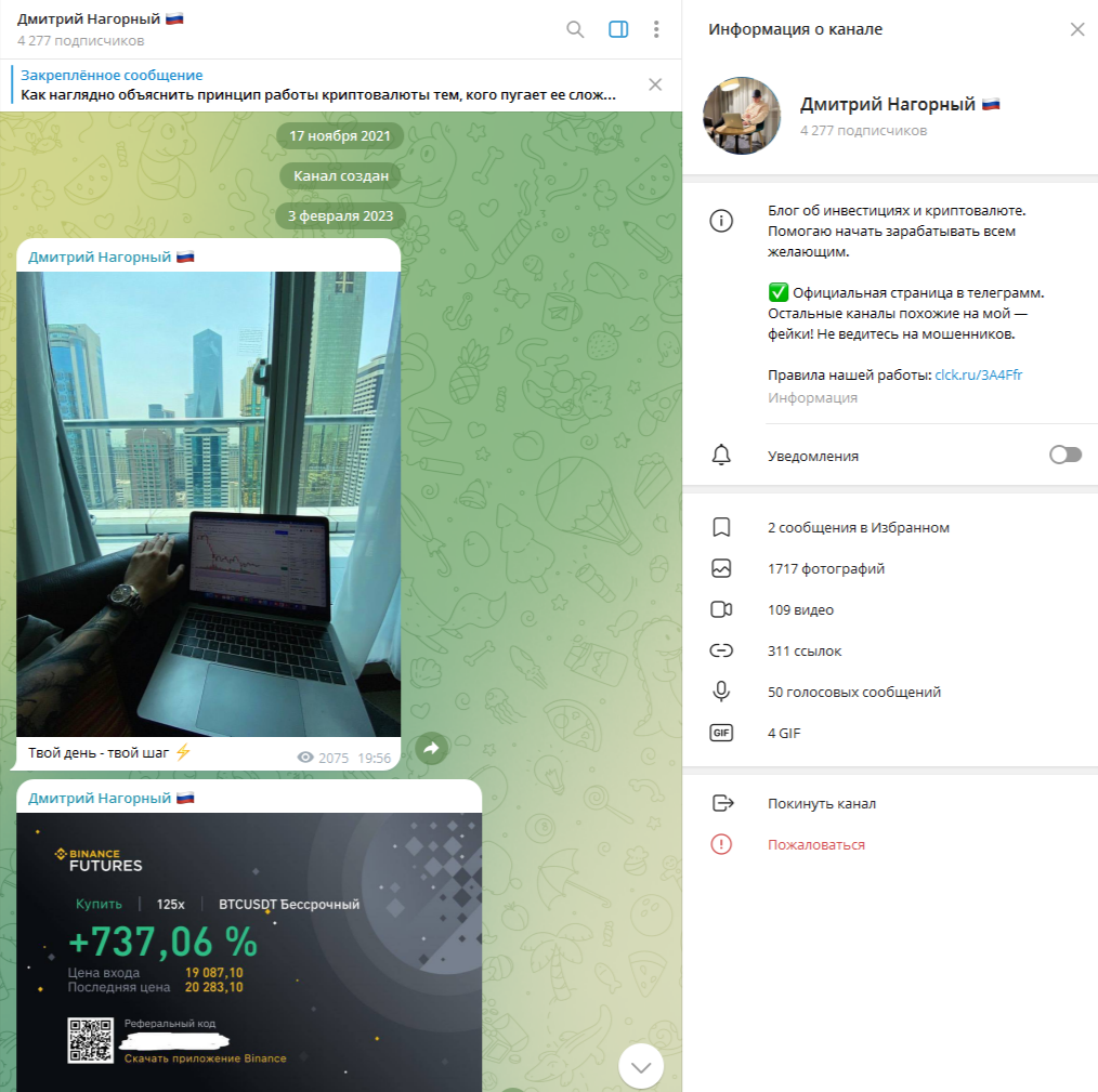 Обзор телегам-канала о заработке Дмитрия Нагорного, анализ деятельности мошенника и отзывы о трейдере dmitry cryptoinvest