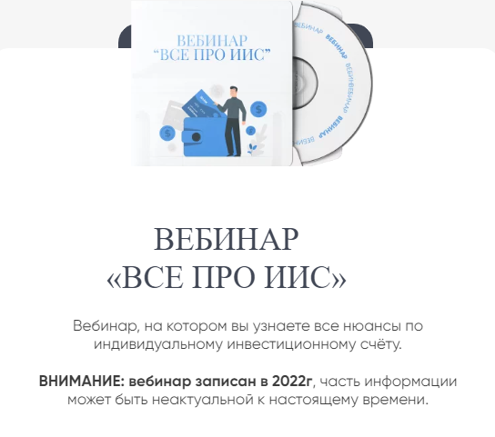 - «Фонды», «Все про ИИС», «Что делать?», «Валютное и налоговое законодательство», «Налоги инвестора» каждый стоит 4600 рублей. Длительность – 90 минут. Они все минимум на 2 года устарели, следовательно, предложенные стратегии неприменимы на практике.
