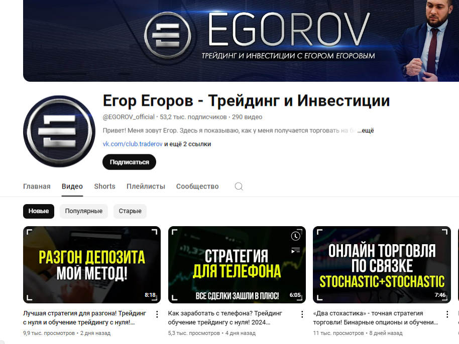 По собственным заявлениям Егор занимается трейдингом больше 8 лет, за это время прибыль выросла до сотен тысяч рублей, а созданные позже медиа до суммарных 220 тысяч подписчиков. Трейдер уверен, заработать на рынке может каждый, для этого нужно всего лишь следовать его рекомендациям.
