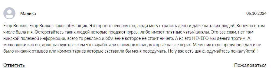 Настоящие отзывы о Егоре Волкове крипта