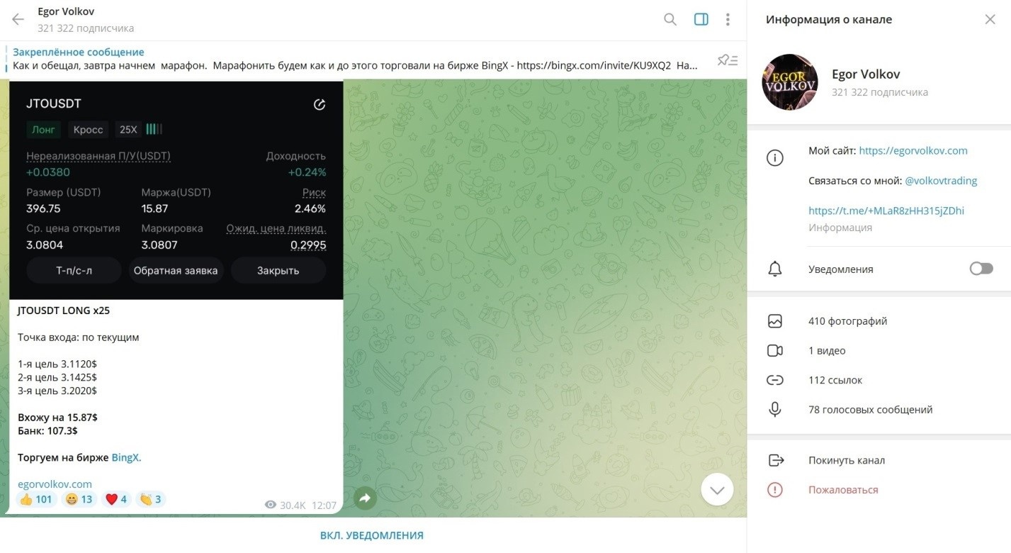 Обзор на трейдера Егора Волкова: отзывы настоящих людей об опыте работы с проектом EgorVolkov, анализ деятельности проекта в Телеграм Egor Volkov