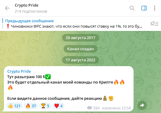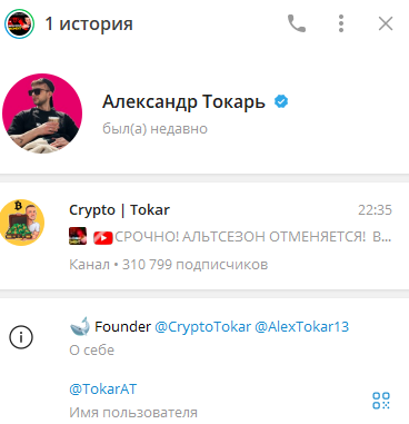 Конкретно канал Crypto Pride Александр Токарь (TokarAT) создал как резервный для своей команды по крипте. Елена (elena criptobiz) выступала в роли менеджера.
