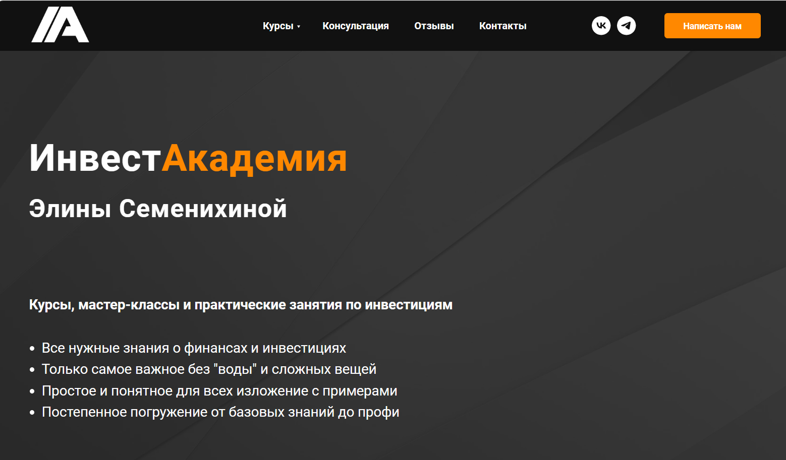 «Инвест академия» – образовательная онлайн-платформа, созданная Элиной Семенихиной для обучения инвестициям. Цель проекта elinatrade ru – помочь начинающим инвесторам минимизировать финансовые риски и увеличить доходность. Обучение в Invest academy включает в себя курсы, мастер-классы и практические занятия.