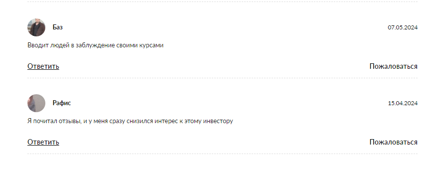- есть негативные отзывы об «Инвест академии», в которых ученики жалуются на низкое качество образовательных материалов.