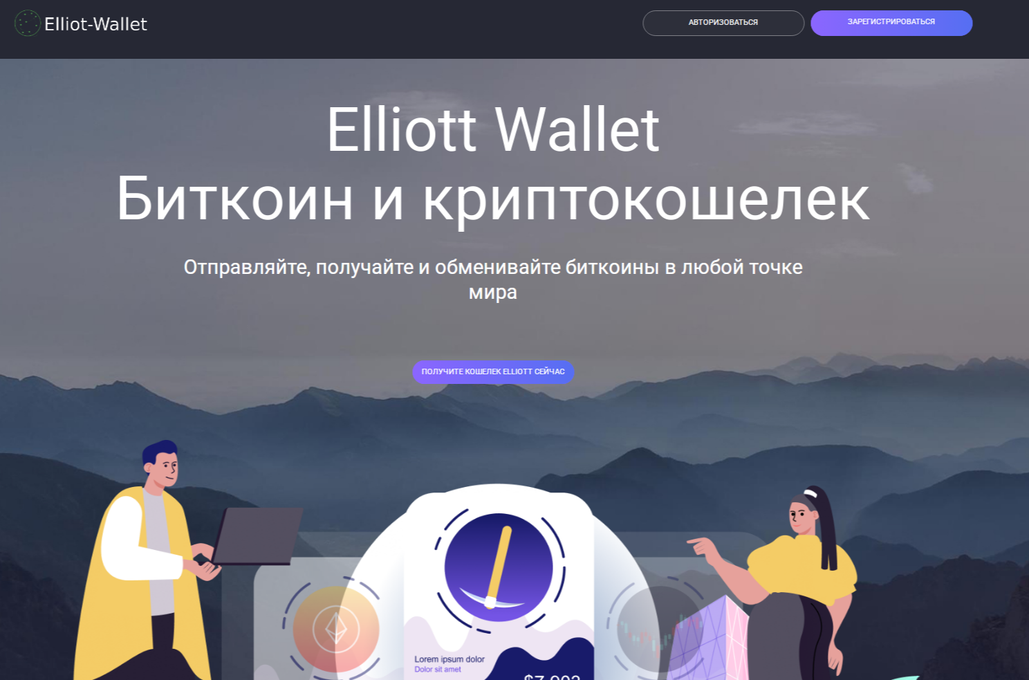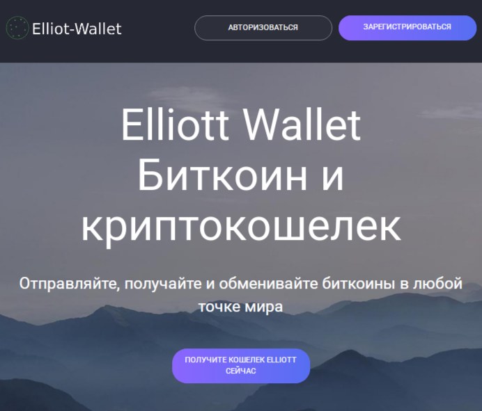 Изучив главную и единственную страницу проекта Elliott Wallet Com, мы выяснили, что он является криптовалютным кошельком, преимущественно для биткоинов. Здесь можно отправлять, получать и обменивать валюту находясь в любом месте планеты.