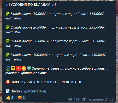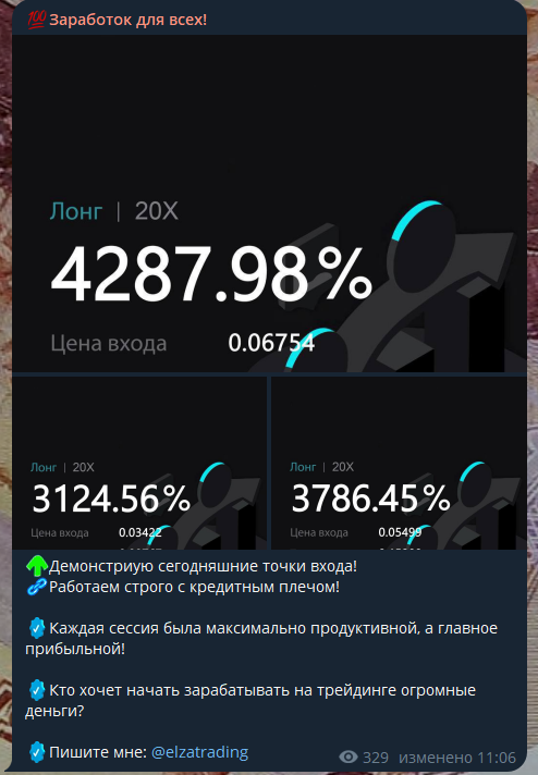 Уже на этом моменте стоит понять, что иметь такую доходность нереально. Да, какой-то актив моменте может увеличиться в несколько раз, но вряд ли кто-то может знать об этом наверняка заранее. Однако админ тг-канала Заработок для всех гарантирует это.