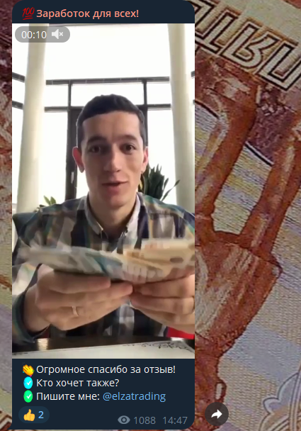 Чтобы убедить реальных подписчиков трейдера Эльзы, в телеграм канале размещаются и отзывы, конечно, в формате видео – создатели, видимо, считают, что так более убедительно. Хотя наоборот, ролики обычно выглядят неестественно и вызывают скорее недоверие. К тому же ни на одном из видео люди не упомянули название канала, обращаясь лишь на “ты” и “вы”.