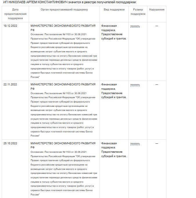 При этом Артем является получателем многих грантов и субсидий от государства.