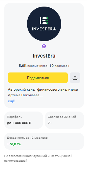 Вы можете подписаться на канал «Эра Бонд», так как представленная там информация полезна и помогает в выборе активов. При этом стоит быть осторожным с покупкой продуктов от Invest-Era, поскольку их полезность не подтверждена.