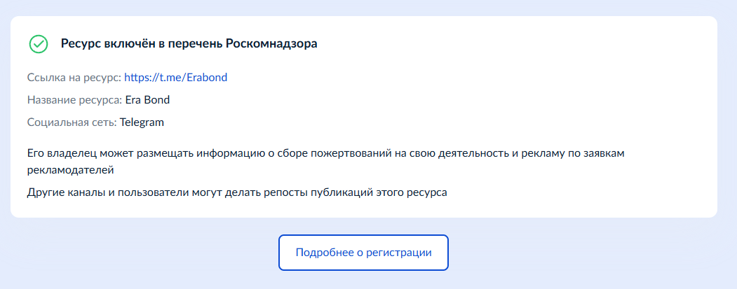 Канал не является приватным, его можно найти через поисковые сервисы по имени пользователя @erabond. Блог зарегистрирован в РКН, поэтому автор проекта не скрывает свою личность, а деятельность ресурса находится под надзором.