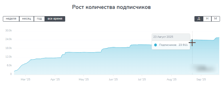 Это сообщество зарегистрировали в январе 2025 года, на момент подготовки обзора оно существует около 9 месяцев. В сентябре на ресурс подписано 25 551 человек.