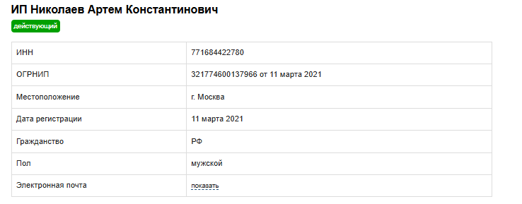 На сайте есть реквизиты ИП, компания действительно существует. Основным видом деятельности организации является представление в СМИ.