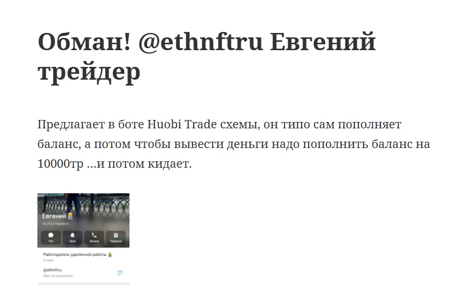 Тем не менее, в интернете на сайте Vkladchic существует утверждение, которое прямо указывает на то, что Ethnftru — мошенник.