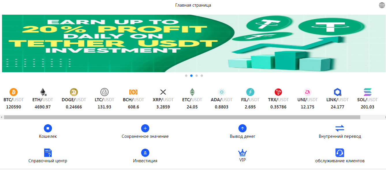 В личном кабинете есть привычные разделы: кошелек, вывод денег и переводы. Разделы «Инвестиции» и «VIP» заманчиво манят возможностями, но скрывают суть. Какие именно привилегии они дают — остаётся загадкой для незарегистрированных пользователей. Типичная схема: сначала соберите все ваши данные, а уж потом, может быть, покажем условия. Не самый честный подход к клиентам.