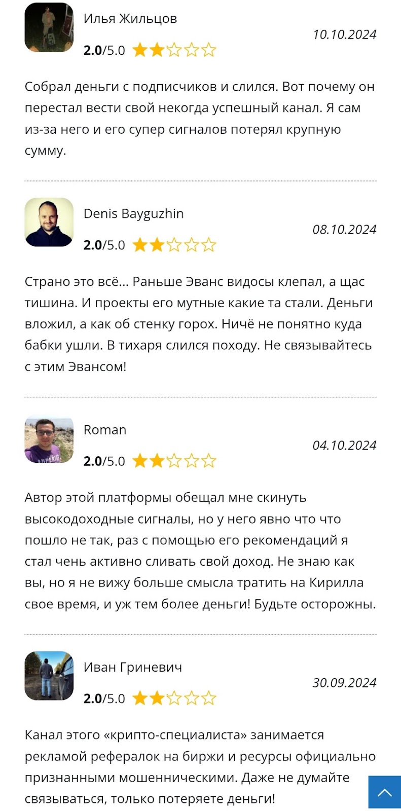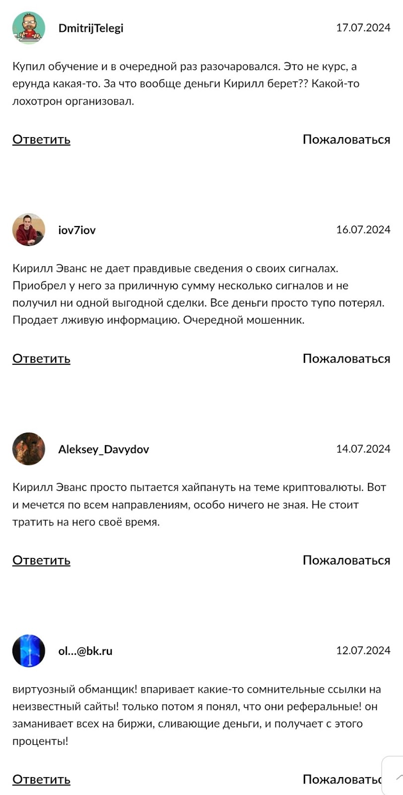 Kirill Evans Cryptocommunity – отзывы подписчиков