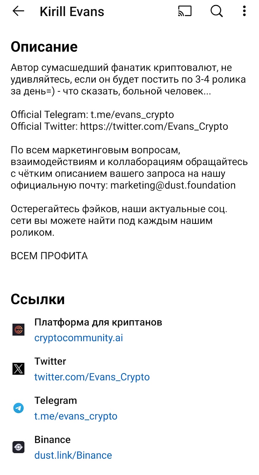 У Кирилла есть аккаунты во многих популярных социальных сетях. В Telegram и X есть каналы Evans Crypto, в Ютубе – канал Kirillevans. Там трейдер выкладывает аналитические материалы, новости, влияющие на криптовалютный рынок, образовательные статьи.