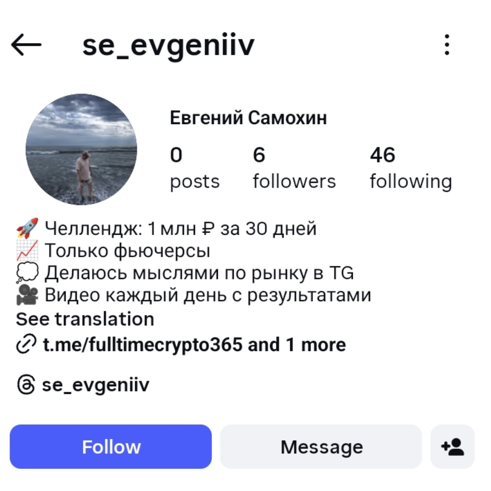 У Самохина есть аккаунт в Инстаграме, и на него подписано только 4 человека.