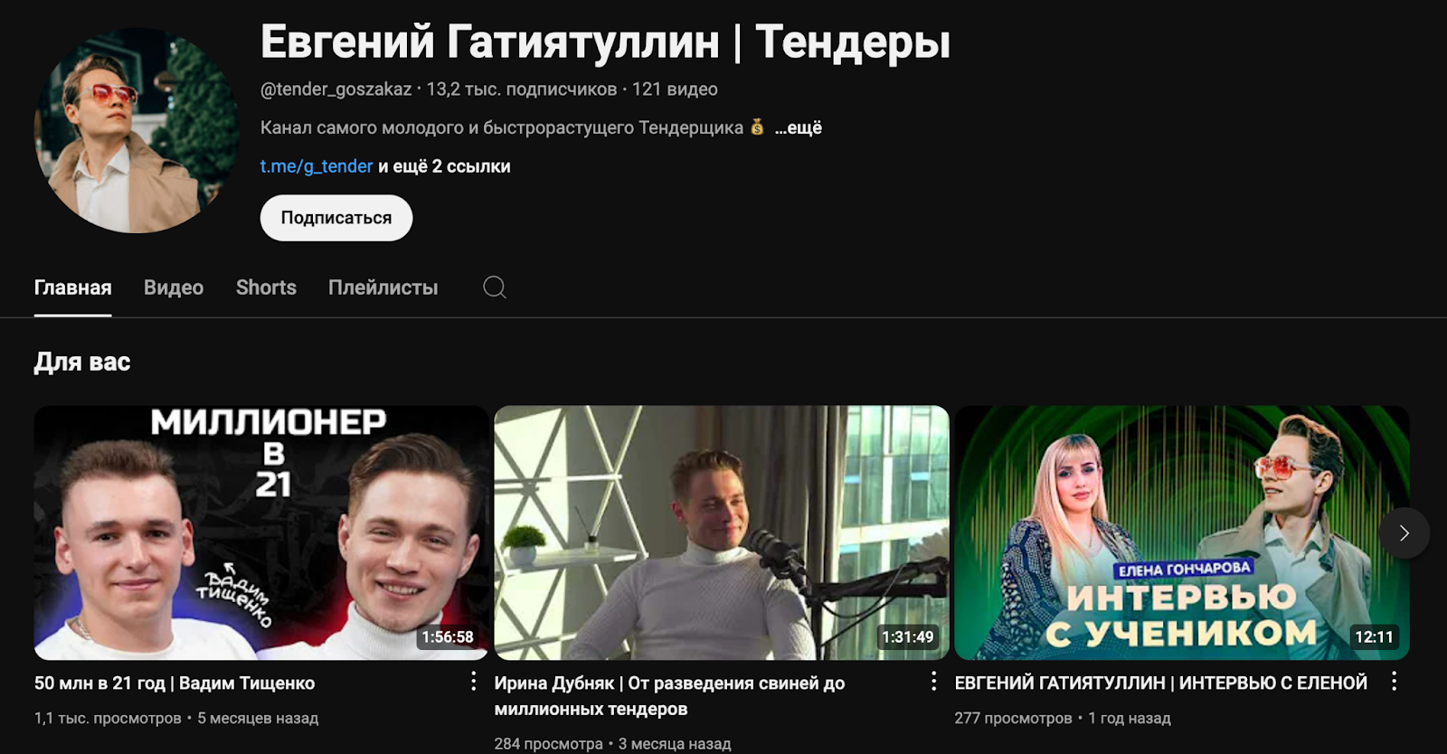 На YouTube трейдер ведет свой канал “Евгений Гатиятуллин Тендеры” с ником tender_goszakaz . На канал подписано более 13,2 тысяч подписчиков. При этом самые популярные видео набрали всего 2 тысячи просмотров, что свидетельствует о накрутке аудитории.