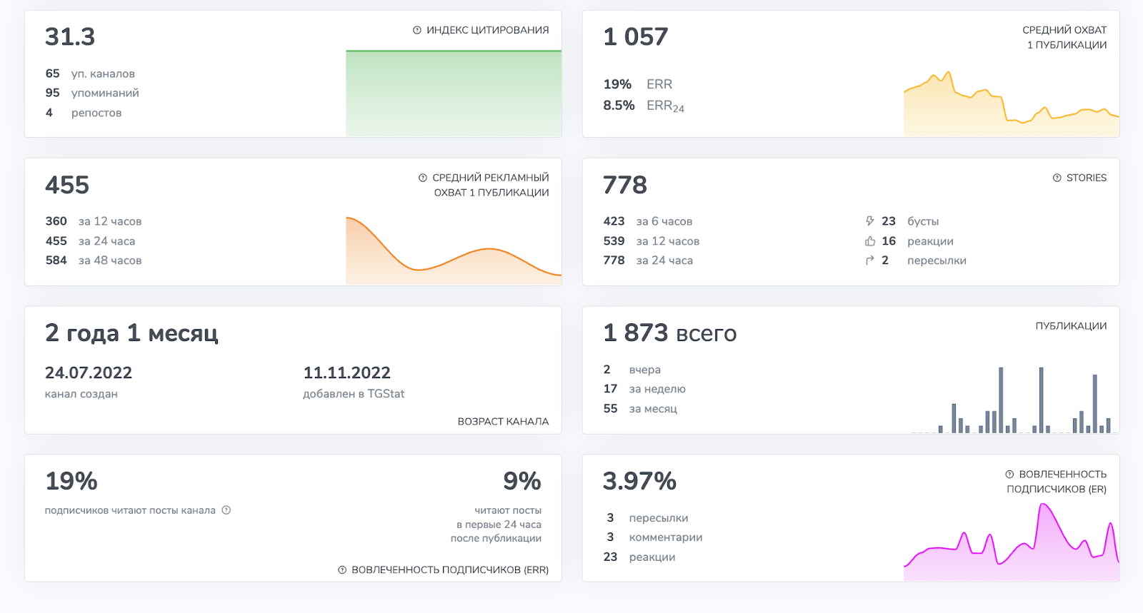 На момент сентября 2024 года на комьюнити подписано более 5,5 тысяч человек. Статистика канала негативная. Общая вовлеченность подписчиков составляет 3,97%. Этот фактор указывает на то, что админ использовал платные программы для накрутки аудитории.