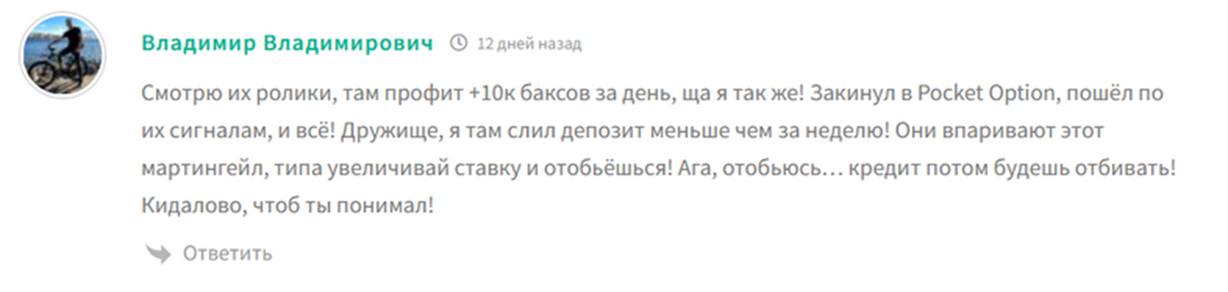 В сети можно найти комментарии реальных пользователей. Часть из них негативно отзывается о профессионализме Евгения. По словам трейдеров, сигналы Соколова приводят к сливу депозита, ни о какой прибыли и речи не идет.