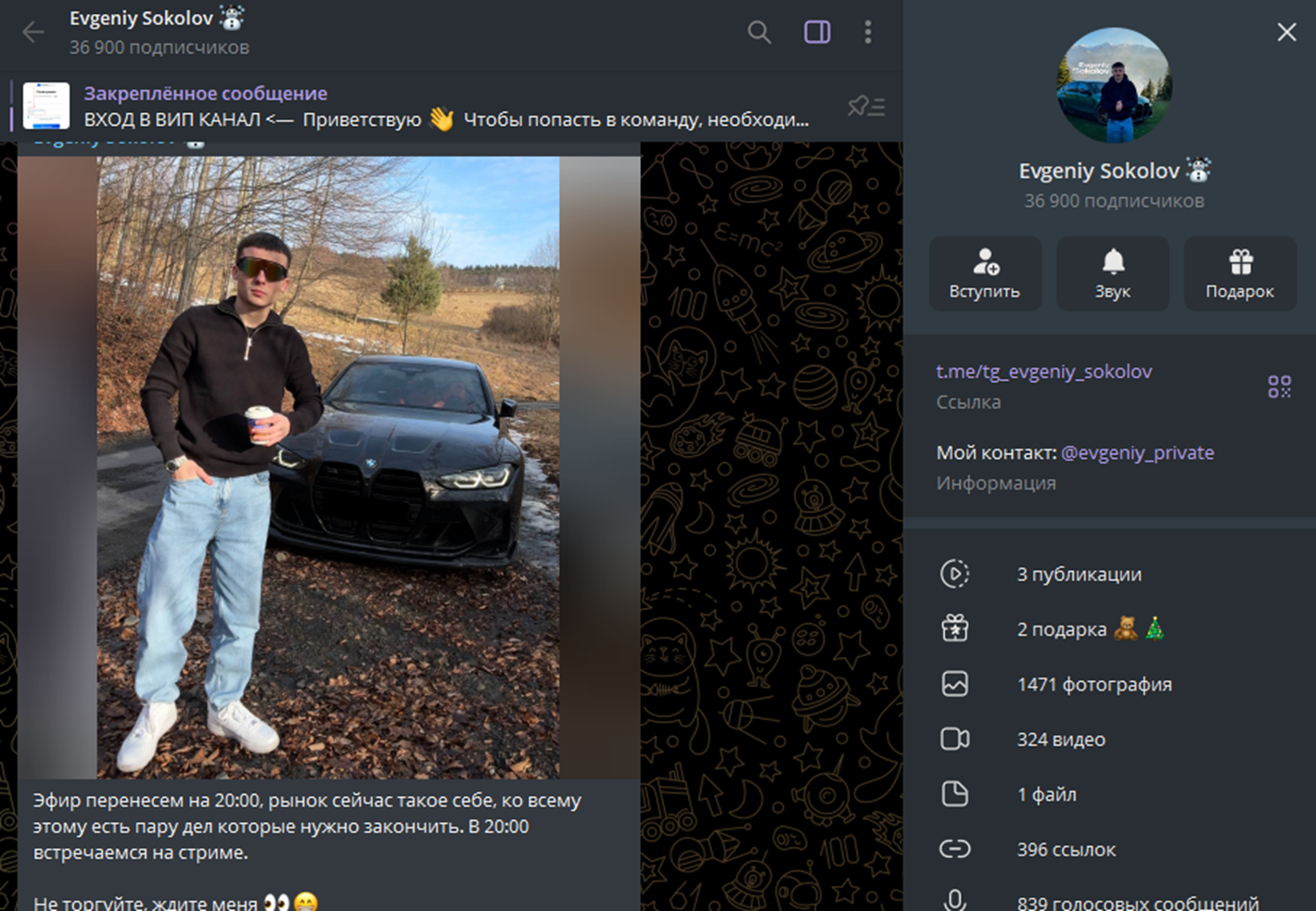 Evgeniy Sokolov Телеграм: отзывы о трейдерском проекте, обзор услуг и заработка с Соколовым в ТГК Evgeniy Private