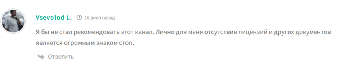 По словам некоторых трейдеров, большим минусом проекта Evgeniy Private является его неофициальная работа. У автора канала нет лицензии, то есть услуги он предоставляет нелегально.