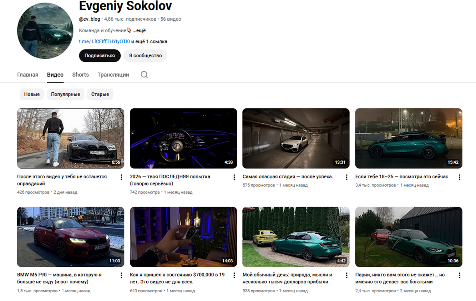 ТГК Evgeniy Sokolov – информационный проект по заработку на копитрейдинге. Это несколько отдельных групп, включая основной канал, Приватный ВИП-клуб и Отзывы. Дополнительно автор ведет Ютуб, куда выкладывает свои размышления р трейдинге.