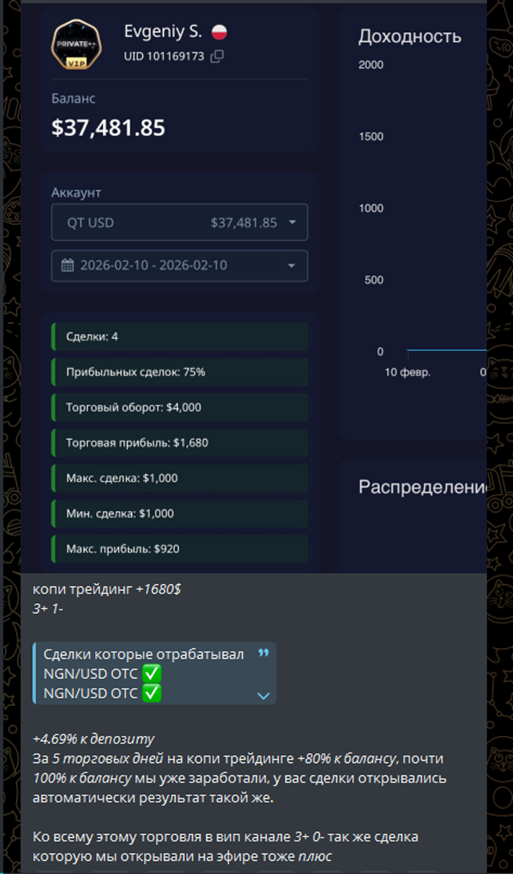 Но копии таких комментариев иногда можно найти на общем канале. Они выставляются самим Евгением, представляют собой скрины якобы переписки с клиентами. В постах показаны высокие цифры дохода, благодарности от подписчиков. Но никаких доказательств, что это реальные отзывы, нет.