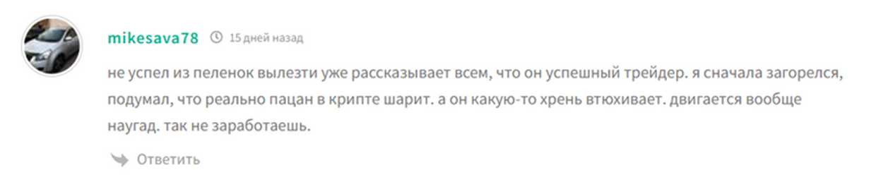 Также многие сомневаются в наличии достаточного опыта у трейдера. Пользователи говорят, что аналитика очень плохая, Евгений буквально двигается наугад.