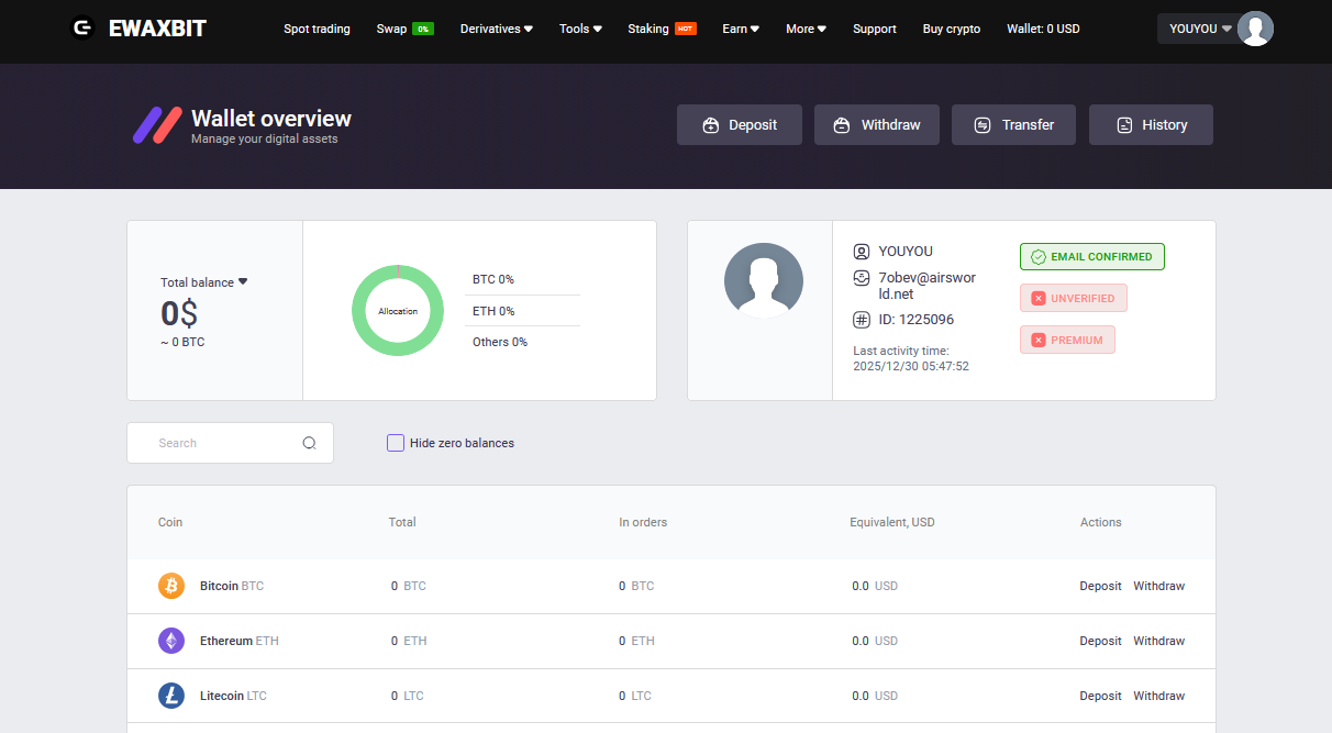 EwaxBit Net – молодая площадка, которая заявляет о себе, как о современной криптовалютной бирже. Клиентам предлагаются услуги по торговле спотами, опционами и фьючерсами, маржа до 10x, стейкинг. Есть функции холодного хранения при помощи встроенного кошелька и сервис по обмену криптовалют.