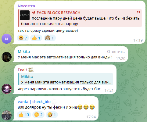 Отрицательные отзывы об этом проекте появились еще в начале марта 2024 года. Уже тогда аналитики писали о том, что ничего уникального своим подписчикам автор ресурса не предлагает. Комментирование на канале открыто. Пользователи обсуждают стратегии, новые аирдропы и предложения автора Телеграм-канала Fackblock. Откровенной критики или негатива мы не обнаружили.