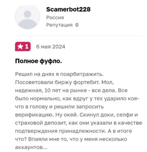 В интернете было найдено всего несколько отзывов об этой бирже. Платформа, скорее всего, не успела набрать клиентов. Но все ее пользователи остались недовольны сотрудничеством. Farbity называют мошеннической площадкой. Жалуются, что после нескольких сделок аккаунт блокируют и предлагают пройти платную верификацию. Но даже после подтверждения личности деньги вывести не дают. Вот что пишут об этой бирже трейдеры и инвесторы: