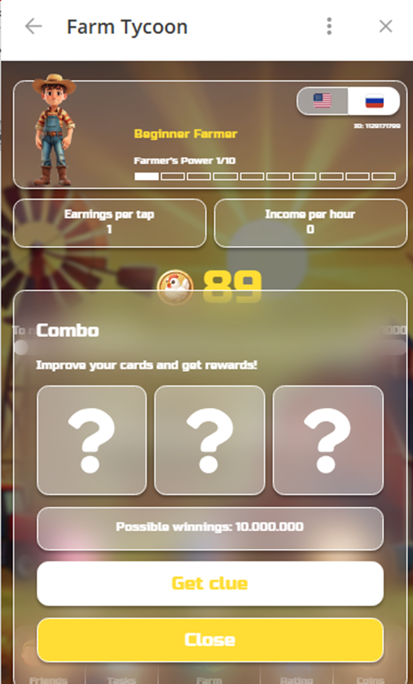 В приложении Farm Tycoon есть две встроенных игры, где предлагается заработать дополнительные монеты. В Combo необходимо собрать комбинацию дня. В случае успеха на счет будет зачислено до 100000 $FRMTC. Для запуска очередного раунда мини-игры пользователь должен привлечь 5 друзей.