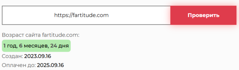 Проект Fartitude позиционируется как надежный и имеющий большую базу клиентов. Мы проверили домен на возраст и выяснили, что он существует более 1,5 лет. С одной стороны это нормальный показатель для криптообменника. Настораживает, что о нем мало кто слышал. В частности он не фигурирует в реестрах сервиса мониторинга криптовалютных обменников.