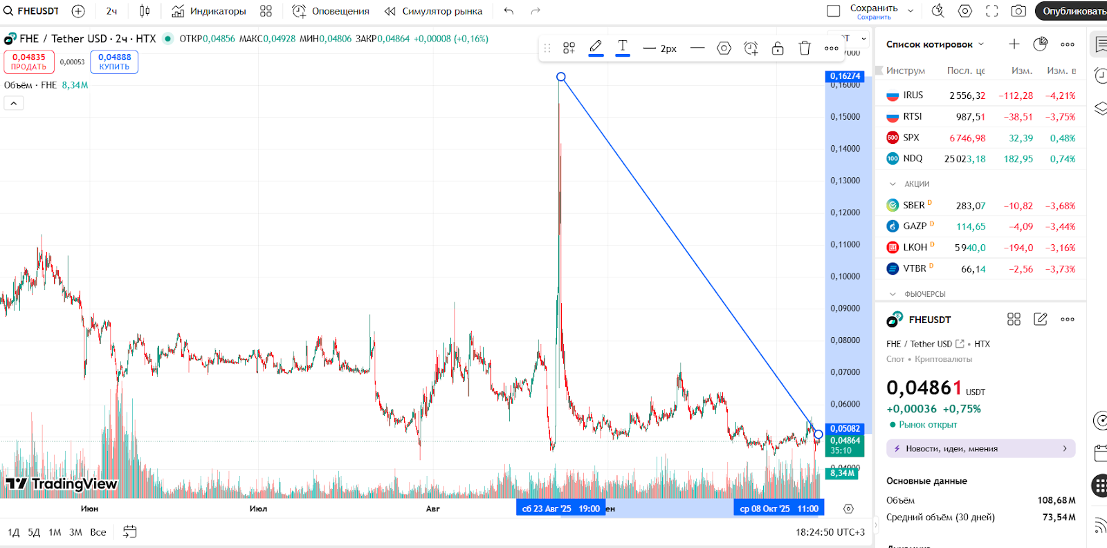 По курсу FHE/USDT цена колеблется в районе $0,048 хотя еще летом 2025 г. монета доходила до $0,16. В телеграм-чатах сообщества многие называют текущую цену “идеальной точкой входа”, считая, что после накопительной фазы неизбежен рост.
