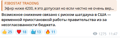 В следующем материале блогер отмечает, что падение курса ETH может быть связано с риском шатдауна в США. Но он не приводит никаких аргументов, подтверждающих его точку зрения.