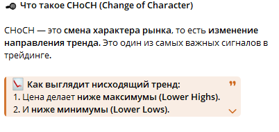 Например, один из постов блога объясняет значение термина CHoCH. Однако это не эксклюзивная информация, она есть в открытом доступе в интернете.
