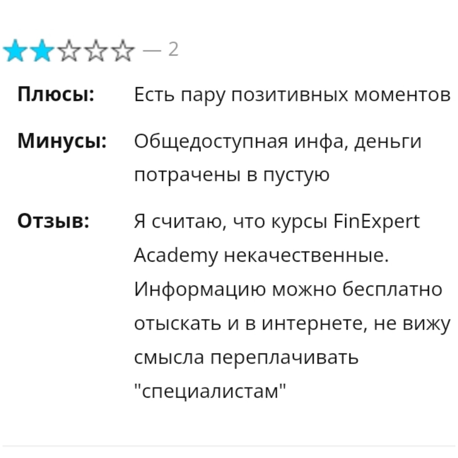 Автор Fin Expert не предлагает бесплатной консультации, демонстрационных курсов или пробного периода. Пользователь вынужден платить за услугу «вслепую», без понимания ценности предложенного контента. Такое поведение является характерным признаком недобросовестных онлайн-школ.