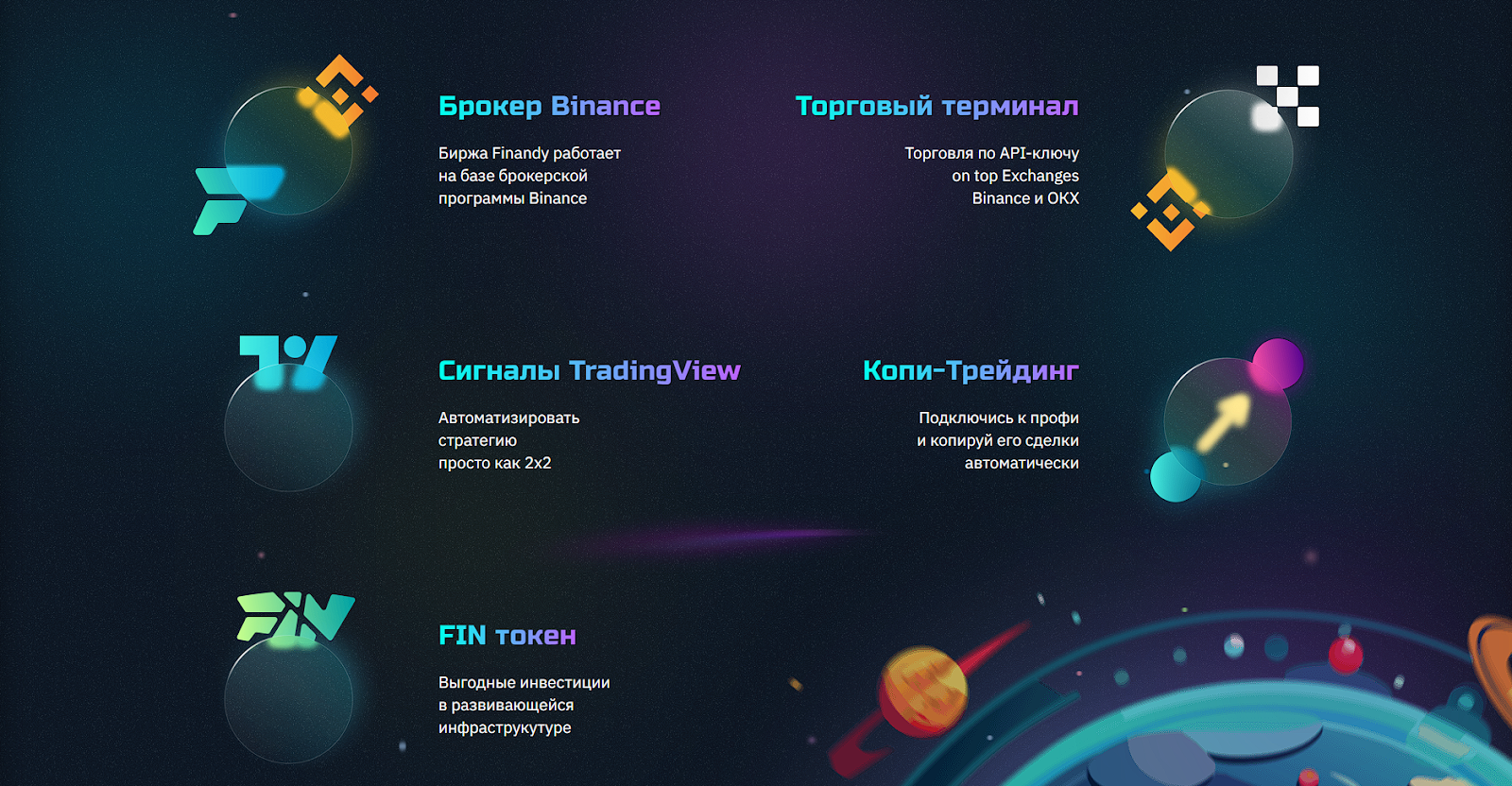 Finandy — это биржа для ручного или алгоритмического трейдинга. Она активно работает на территории РФ и позволяет торговать через встроенный торговый терминал finandy на Binance и OKX. Среди своих преимуществ они также выставляют копи трейдинг и токен FIN. Но можно ли им доверять? Узнаете в данном обзоре.