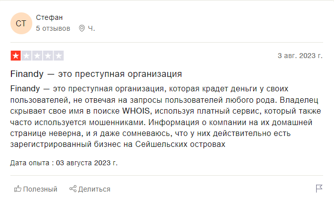Если у вас есть опыт работы с Finandy com — поделитесь им в комментариях. Так наши читатели сформируют собственное впечатление и смогут избежать рискованных инвестиций при трейдинге.