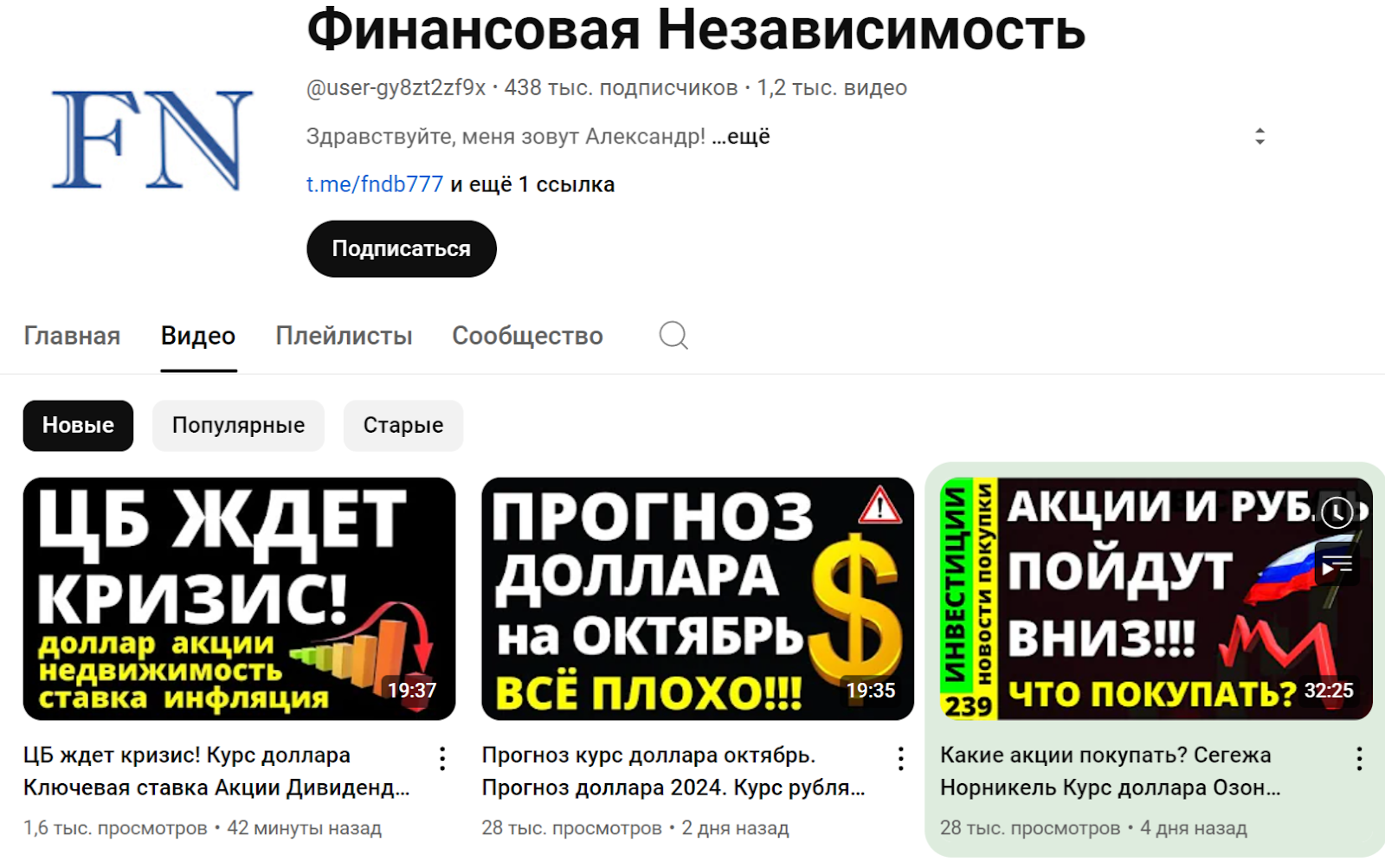 Новые видео добавляются каждые два-три дня. Из последних тем стоит выделить прогнозы курса доллара, советы по выбору акций, риски кризиса ЦБ, правила вложений при обвале рынка и т. д. Комментарии под роликами открыты, поэтому оставить отзывы о Финансовой независимости вполне реально. Правда, нужно помнить о модерации со стороны автора.